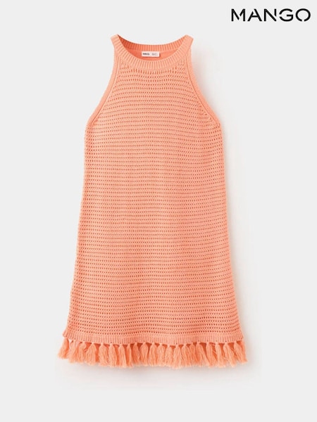 Mango Orange Open Stitch Fringe Dress