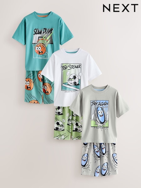 Sage Green Shorts Pyjamas 3 Pack (3-16yrs)