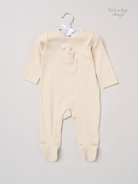 Rock-A-Bye Baby Boutique Light Beige Sleepsuit With Appliqué Bear With Cloud Pocket