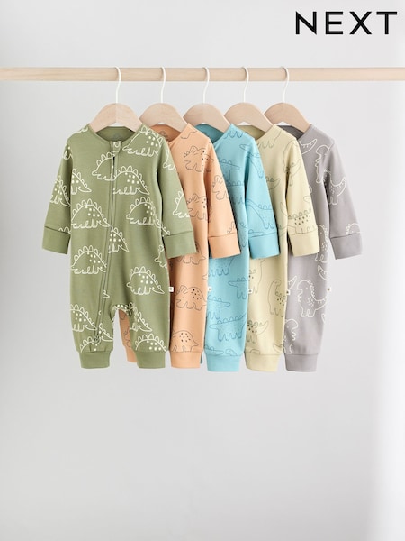 Multi Dino Two Way Zip Baby Sleepsuits 5 Pack (0mths-3yrs)