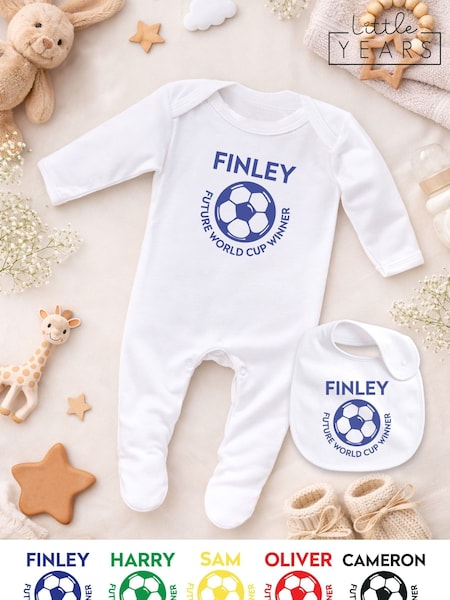Personalised World Cup Sleepsuit & Bib Set by Little Years