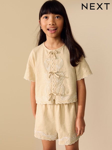 Yellow Embroidery Tie Shorts Set (3-16yrs)