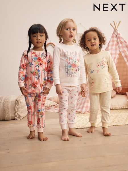 Pink/Yellow floral Snuggle Pyjamas 3 Pack (9mths-12yrs)