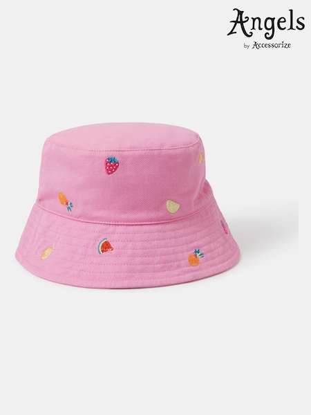 Angels By Accessorize Pink Girls Fruit Embroidered Bucket Hat