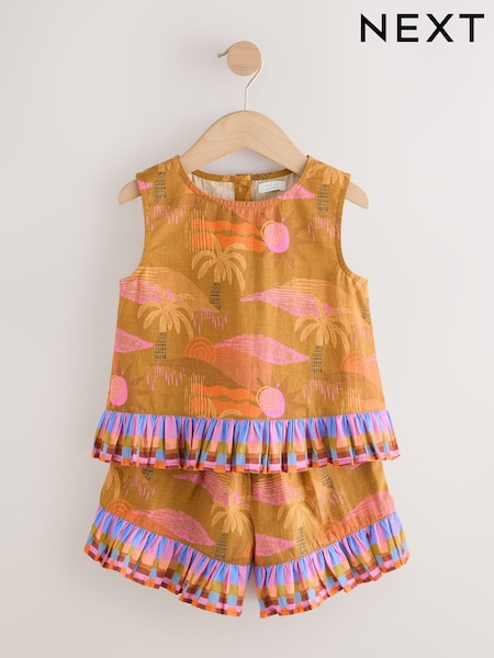 Olive Green Tropical Peplum Blouse and Shorts Set (3-16yrs)