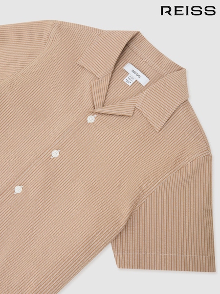 Reiss Taupe Pyrus Striped Cuban-Collar Shirt
