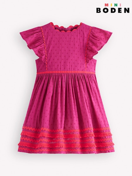 Boden Pink Flutter Sleeve Ric Rac Dress