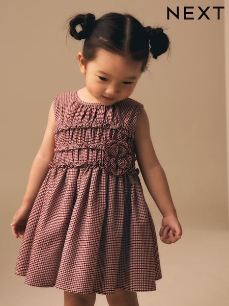 Chocolate Brown Gingham Corsage Dress (3mths-8yrs)