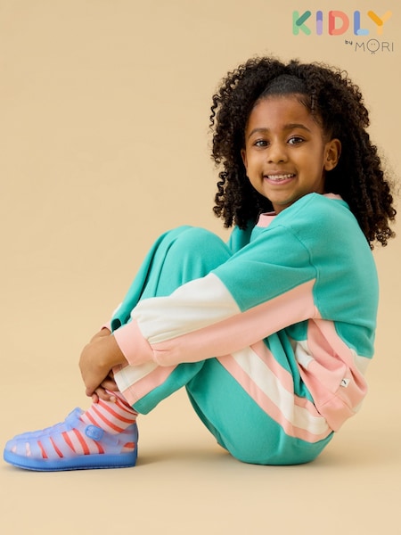 KIDLY by MORI Blue Wide Leg Soft Cotton Colourblock Joggers