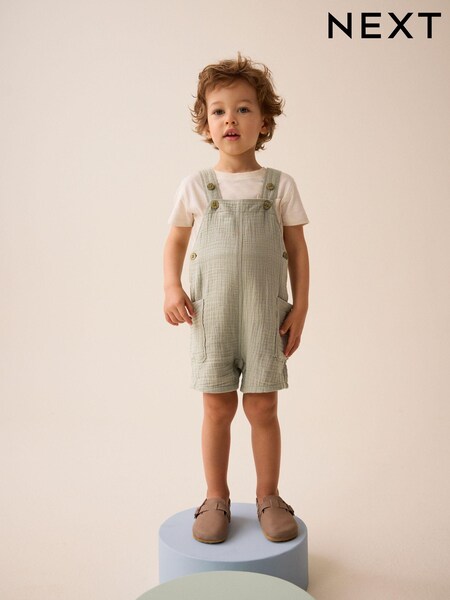 Sage Green Soft Textured Cotton Dungaree (3mths-7yrs)