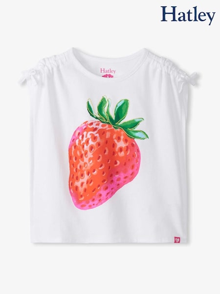 Hatley White Strawberry Cinched Shoulder Top