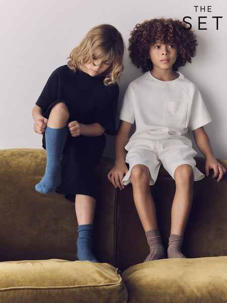 The Set 2 Pack Jersey Interlock Short Sleeve Pocket T-Shirt and Short Set Black/Cream