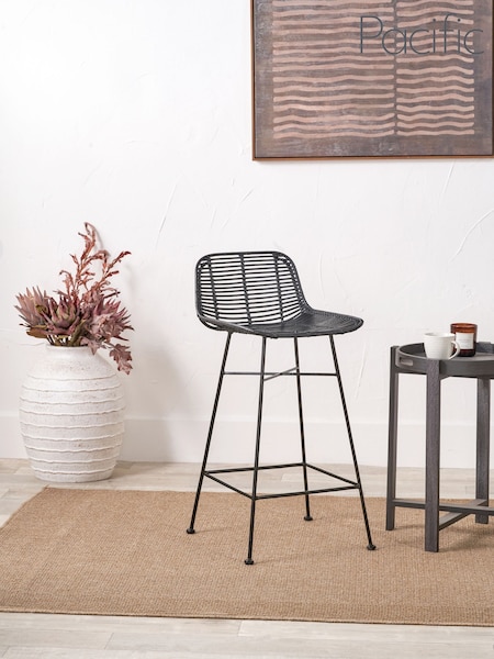 Pacific Black Rattan Core and Black Metal Bar Stool