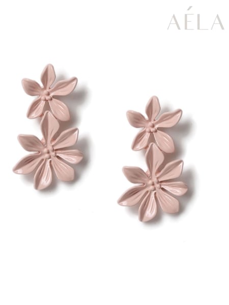 Aela Pink Matte Flower Drop Earrings