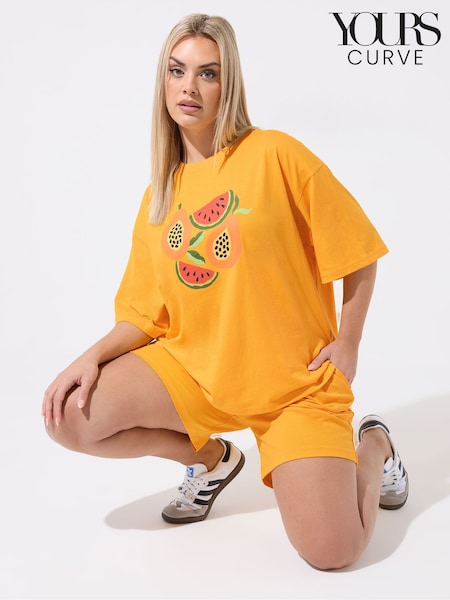 Yours Curve Orange Limited Fruit Graphic Top & Shorts Set