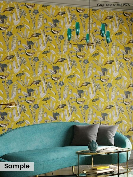 Graham & Brown Mustard Yellow Glasshouse Wallpaper Sample