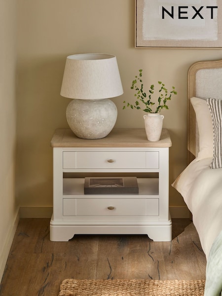 Chalk White Hampton Country Collection Luxe Painted Oak 2 Drawer with Shelf Bedside Table