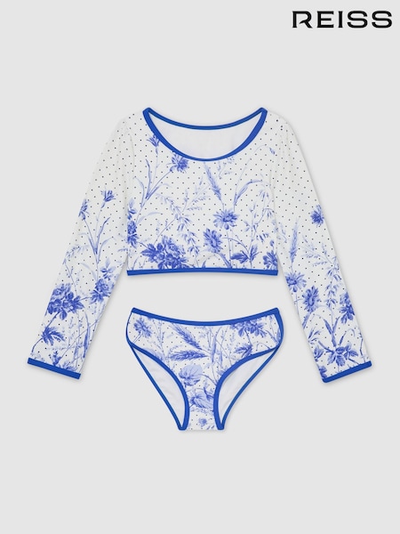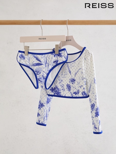 Reiss Blue Print Netty Floral-Print Long-Sleeve Bikini Set