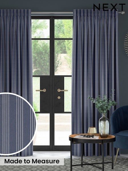 Yard Navy Blue Hebden Striped 100% Cotton Lined Pencil Pleat Curtains