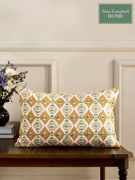 Nina Campbell Ochre Ikat Stripe Embroidered Cushion