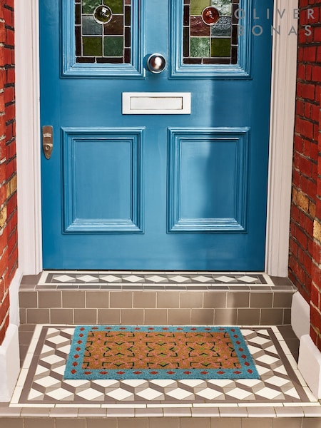 Oliver Bonas Blue Tile Rectangular Doormat