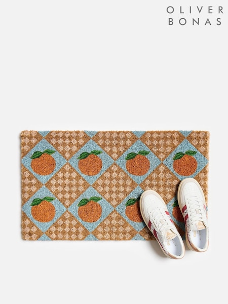 Oliver Bonas Blue Brown Diagonal Fruit Doormat