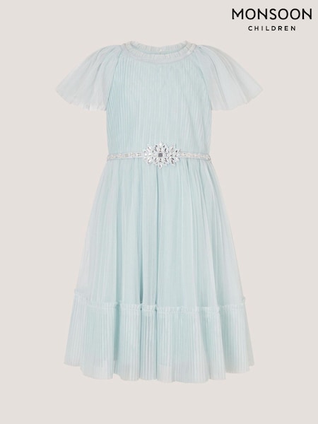Monsoon Green Sky Embellished Pleated Party Dress