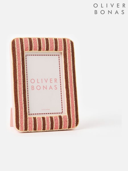Oliver Bonas Pink Damia Pink & Brown Beaded Photo Frame 4x6