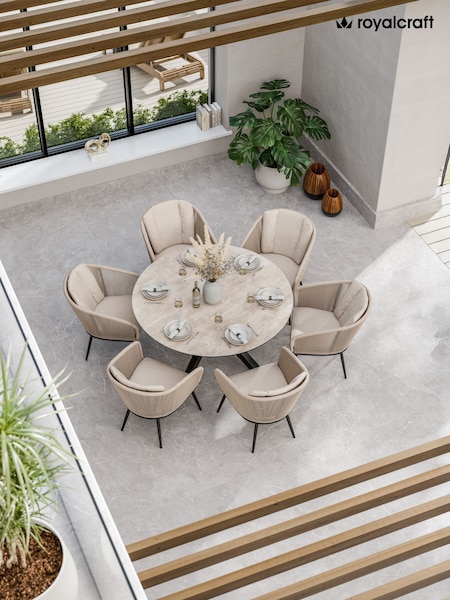 Royalcraft Natural Roma Garden Terrazzo Round Table With 6 Rope Dining Chairs