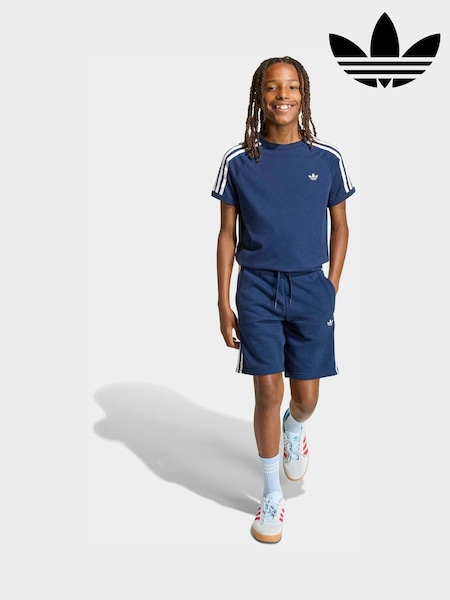 New Balance Blue Navy French Terry Stacked Logo Cotton Shorts