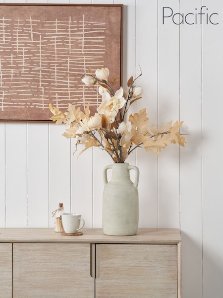 Pacific White Terracotta Decorative Vase with Handles Large