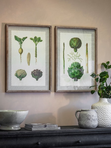 One.World Set of 2 Green Croston Asparagus and Artichoke Framed Wall Arts Print