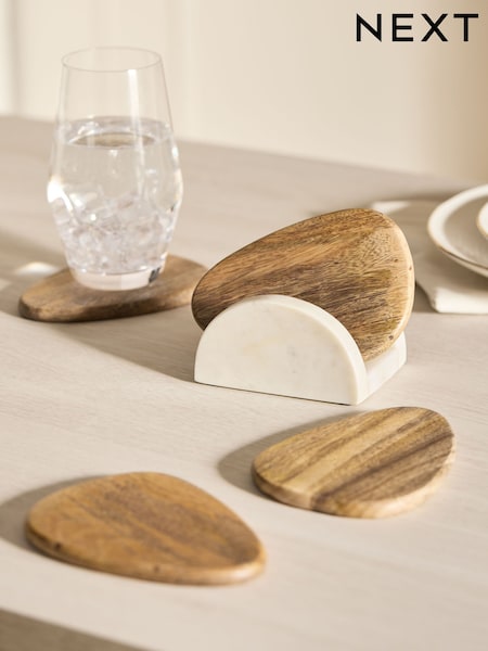 Set of 4 Natural Wooden Zaya Coasters in Marble Holder