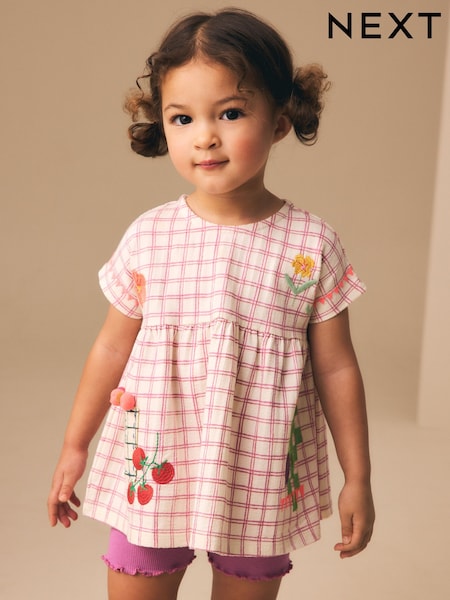 Purple Fruit Embroidery Peplum Top and Cycle Shorts Set (3mths-7yrs)