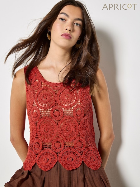 Apricot Rust Hexagon Flowers Crochet Top