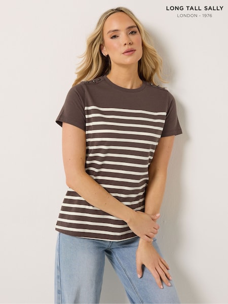 Long Tall Sally Brown Stripe Button T-Shirt