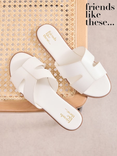 Friends Like These Faux Leather White Wide Fit Comfort Mule Casual Flat Sandals