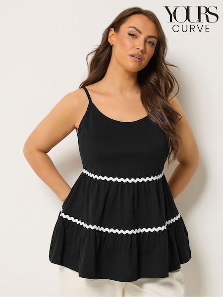 Yours Curve Black Ric Rac Strappy Tiered Vest