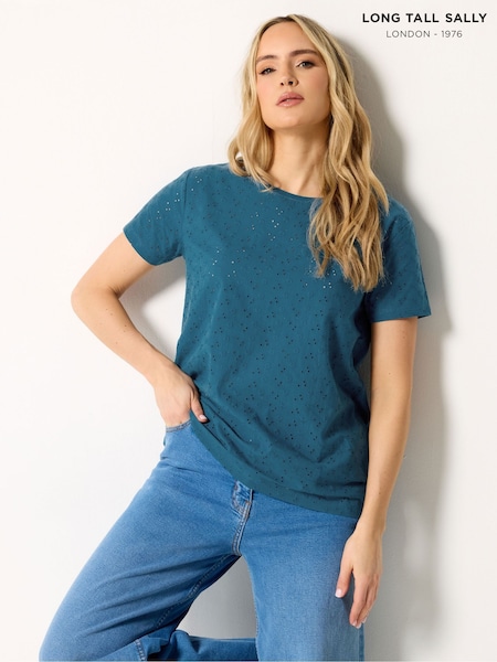 Long Tall Sally Blue Embroidered Front T-Shirt