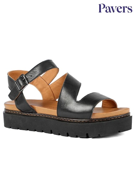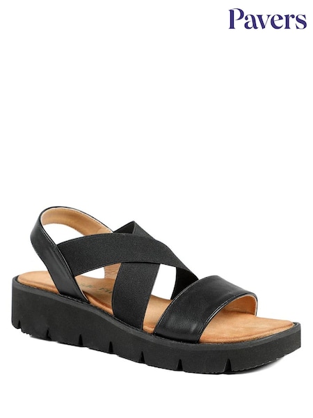 Pavers Black Wide Fit Elasticated Fashionable Sandals