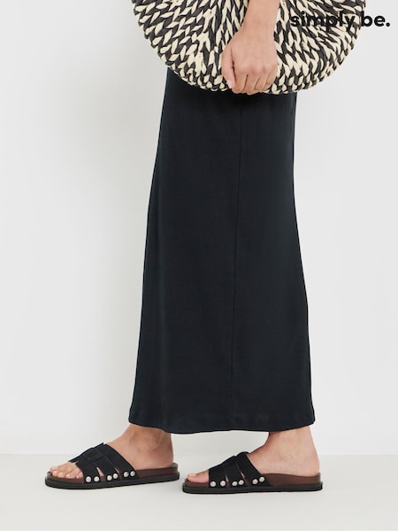 Simply Be Black Wide Fit Wood Effect Suede Footbed Sandals
