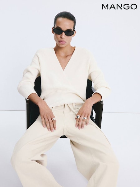 Mango Cream V-Neck Ribbed Jumper
