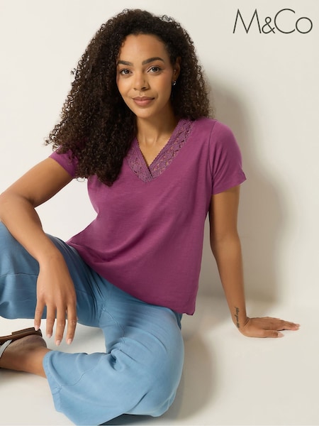 M&Co Purple Lace Trim V-Neck T-Shirt