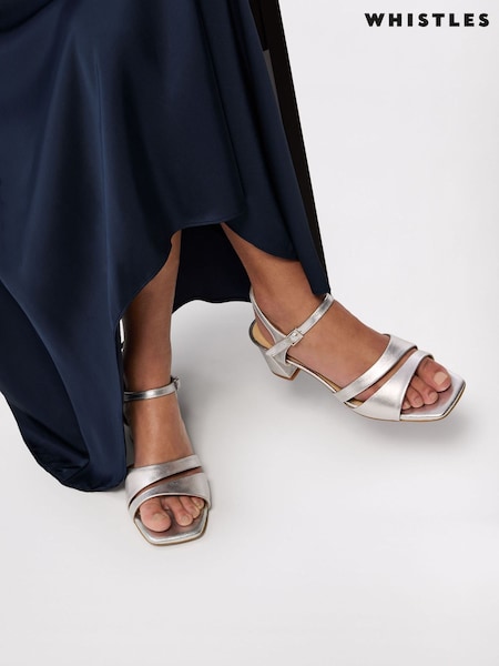 Whistles Silver Cutout Block Heel Sandals