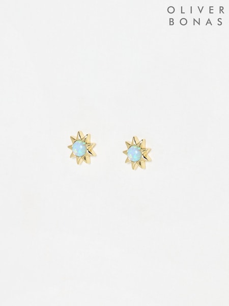 Oliver Bonas Blue Cyra Sun Gold Plated Opalite Stud Earrings