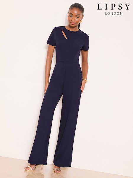Lipsy Cobalt Blue Petite Short Sleeve Splice Jumpsuit