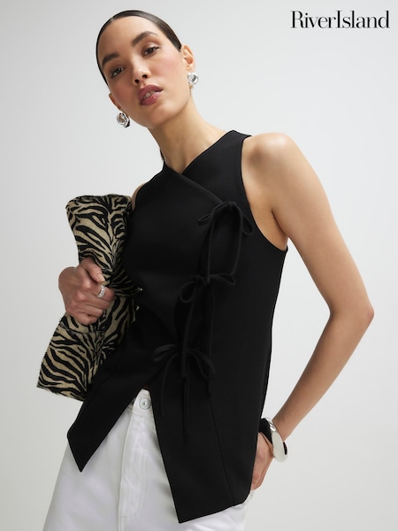 River Island Black Asymmetric Bow Tie Front Waistcoat