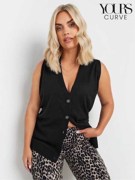 Simply Be Black Gold Button Detail Square Neck Waistcoat