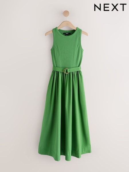 Green 2 in 1 Woven Mix Belted Midi Dress