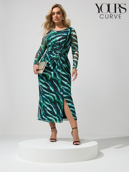 Yours Curve Green London Mesh Side Knot Midi Dress